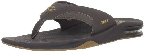 The Fanning sandal by Reef is the signature sandal of the 2007 ASP World Champion Mick Fanning. It features a church key embedded in the bottom of the sandal to open bottles (opening a bottle with your sandal will definitely get you noticed at a party). Besides the bottle opener, the sandal has a comfortable, water friendly Nubuck upper, contoured, compression molded footbed, and a full 360 degree heel airbag.You will not be disappointed with